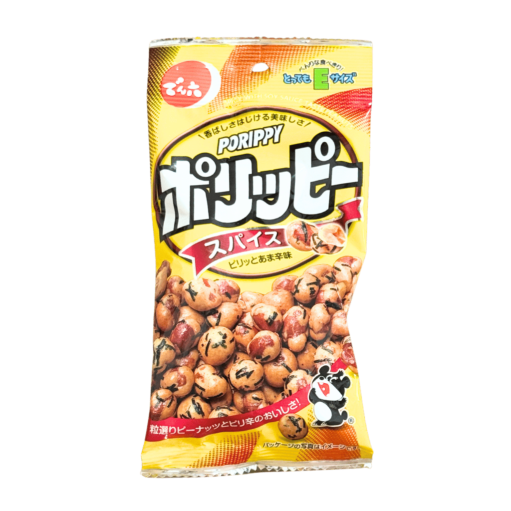 Enjoy a bold and addictive Japanese peanut snack featuring carefully selected roasted peanuts coated in a savory soy sauce glaze with a spicy kick. These crunchy peanuts are seasoned with a balanced blend of soy sauce, chili heat, and a subtle touch of sweetness from honey, creating a rich umami flavor that lingers with every bite.